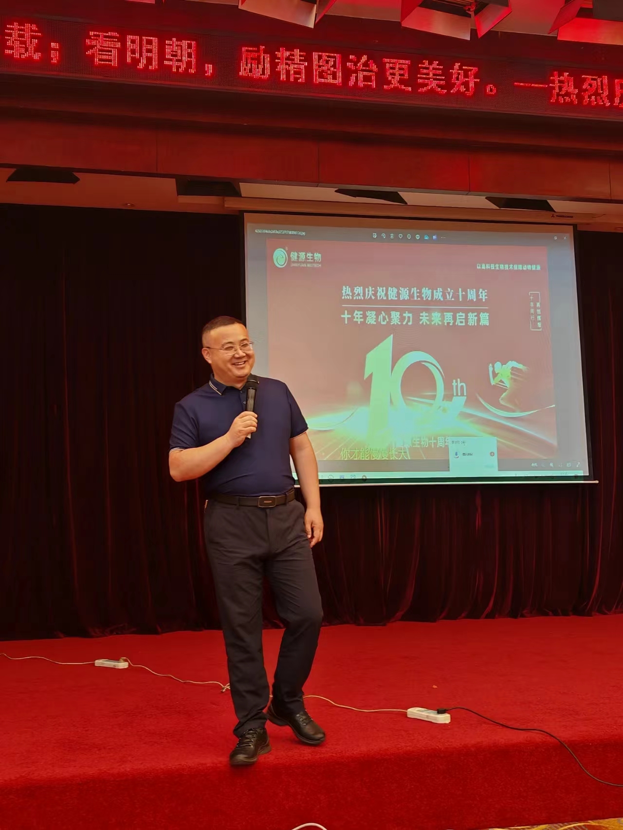 王誠董事長在講話中指出,健源生物十年來,克服了無資金、無經驗、無市場的創業困難,走出了一條他無我有、他有我優、他優我新的創新發展之路,實現了從無到有、從小到大、從弱到強的飛速發展。這一切離不開全體員工的緊密追隨,離不開客戶朋友的支持信任,離不開各級領導的關懷幫扶。健源生物將始終不忘初心牢記使命,堅守“誠實守信”的企業核心價值觀,打造生物科技新質生產力,以高科技生物技術造福人類。