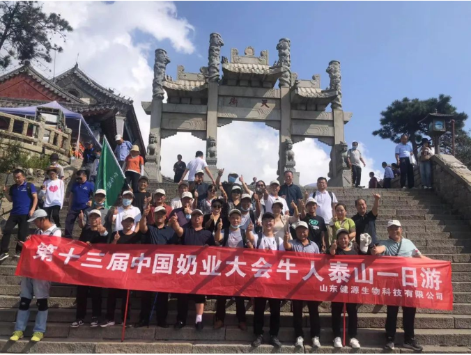 2022年9月6日,在第十三屆奶業(yè)大會(huì)、2022奶業(yè)D20峰會(huì)暨2022奶業(yè)展覽會(huì)期間,山東健源生物科技有限公司為感恩回饋各地牛人朋友對公司的支持和信任,公司精心安排了登泰山活動(dòng),登高望遠(yuǎn),為奶業(yè)加油