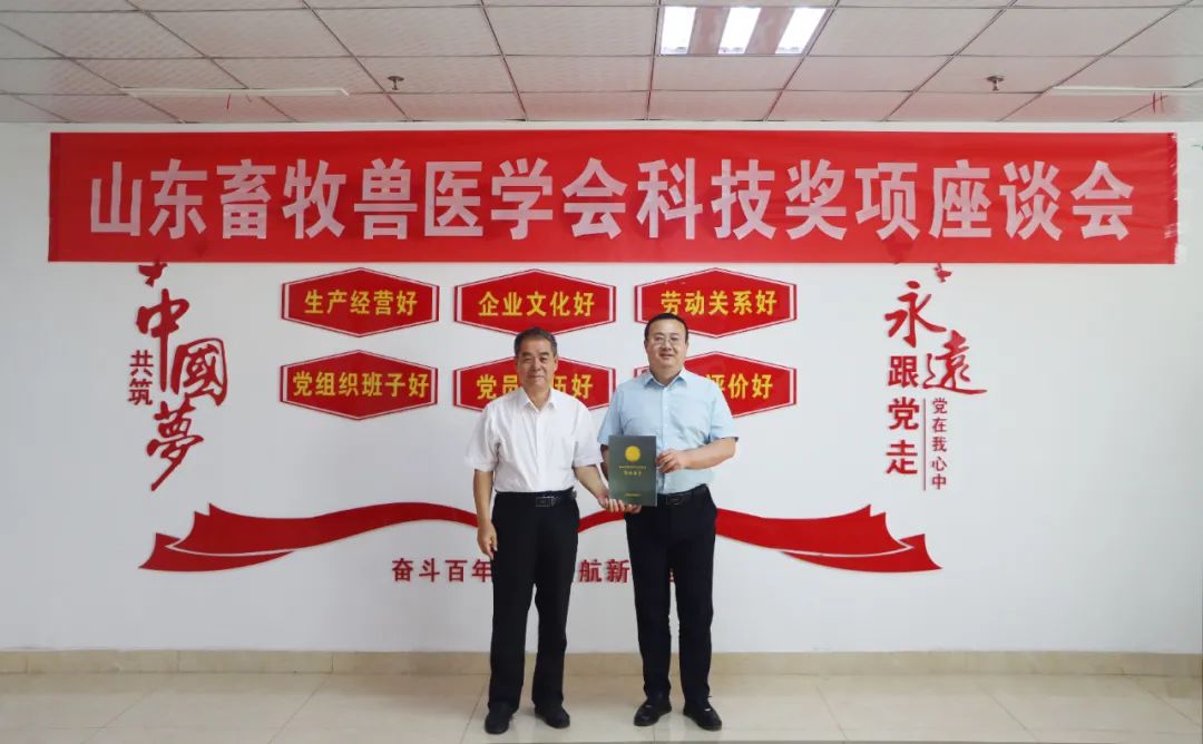 2023年9月9日,泰安市科技局黨組成員、四級(jí)調(diào)研員李華定,山東畜牧獸醫(yī)學(xué)會(huì)黨支部書(shū)記、副理事長(zhǎng)兼秘書(shū)長(zhǎng)崔言順教授,山東畜牧獸醫(yī)學(xué)會(huì)副秘書(shū)長(zhǎng)、山東農(nóng)業(yè)大學(xué)趙孝民教授,山東畜牧獸醫(yī)學(xué)會(huì)副秘書(shū)長(zhǎng)、山東農(nóng)業(yè)大學(xué)張桂國(guó)教授,山東農(nóng)業(yè)大學(xué)郭翠華教授,山東農(nóng)業(yè)大學(xué)中韓交流生嫝珉赫蒞臨公司座談,并為獲獎(jiǎng)人員頒發(fā)獎(jiǎng)勵(lì)證書(shū)。